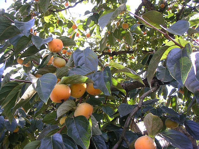 Persimmon=हलुवाबेद] This is an amazing fruit found everywhere in kathmandu... I bet u can't eat it when it is not ripe... u'll choke...but once it is fully ripe, it is delicious...especially offered to brothers by sisters during bhaitika... PERSIMMON Diospyros kaki Linn Ebenaceae Common Names: Persimmon, Oriental Persimmon, Japanese Persimmon, Kaki. Origin: The oriental persimmon is native to China, where it has been cultivated for centuries and more than two thousand different cultivars exist. It spread to Korea and Japan many years ago where additional cultivars were developed. The plant was introduced to California in the mid 1800's. known as the "apple of the Orient," were brought to the Americas about 1825. They are a tart fruit when firm, but sweeten as they soften. They have an excellent flavor; but, if not ripened enough, often leave a stong "astringent" feel to the mouth. The persimmon color can vary from a deep yellowish-orange to a red, and the color carries through to the inner fruit, as can be seen in the photo (bottom). Choose persimmons that are yellowing, shiny, and free of defects. When softened, place in the refrigerator. They are good raw or halved and broiled. They may also be used in recipes. However, over-cooking can make persimmons tough and tasteless. Adaptation: Persimmons do best in areas that have moderate winters and relatively mild summers--suitable for growing in USDA Hardiness Zones 7 to 10. It can tolerate temperatures of 0? F when fully dormant. However, because of its low chilling requirement (less than 100 hours), it may break dormancy during early warm spells only to be damaged by spring frosts later. The leaves are killed by 26? F when growing. Trees do not produce well in the high summer heat of desert regions, which may also sunburn the bark. Fruit: Persimmons can be classified into two general categories: those that bear astringent fruit until they are soft ripe and those that bear nonastringent fruits. Within each of these categories, there are cultivars whose fruits are influenced by pollination (pollination variant) and cultivars whose fruits are unaffected by pollination (pollination constant). Actually, it is the seeds, not pollination per se, that influences the fruit. An astringent cultivar must be jelly soft before it is fit to eat, and such cultivars are best adapted to cooler regions where persimmons can be grown. The flesh color of pollination-constant astringent cultivars is not influenced by pollination. Pollination-variant astringent cultivars have dark flesh around the seeds when pollinated. A nonastringent persimmon can be eaten when it is crisp as an apple. These cultivars need hot summers, and the fruit might retain some astringency when grown in cooler regions. Pollination-constant nonastringent (PCNA) persimmons are always edible when still firm; pollination-variant nonastringent (PVNA) fruit are edible when firm only if they have been pollinated. The shape of the fruit varies by cultivar from spherical to acorn to flattened or squarish. The color of the fruit varies from light yellow-orange to dark orange-red. The size can be as little as a few ounces to more than a pound. The entire fruit is edible except for the seed and calyx. Alternate bearing is common. This can be partially overcome by thinning the fruit or moderately pruning after a light-crop year. Astringency can also be removed by treating with carbon dioxide or alcohol. Freezing the fruit overnight and then thawing softens the fruit and also removes the astringency. Unharvested fruit remaining on the tree after leaf fall creates a very decorative effect. It is common for many immature fruit to drop from May to September (may be diff in diff locations)...