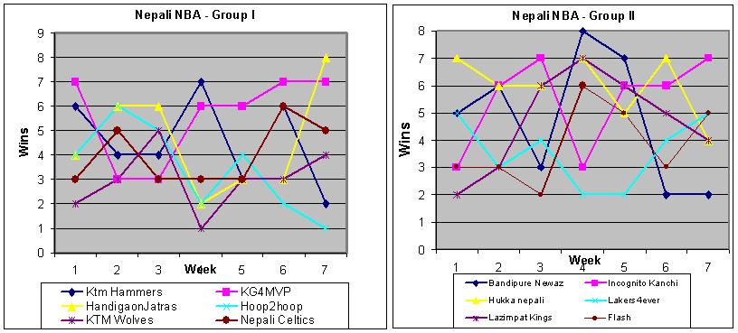 1st Hukka Nepali. The ultimate champion into the 1/3rd of the season. Boasts the King in its lineup with helps from Ming, Bosh, Johnson, Iguoadia and Randolph. With Yao Ming hurt, the team could loose the no.1 spot KG4MVP or Ingonito Kanchhi. Never had a loosing week before last week. Even with Ming out, gave a good fight. A great matchup in week 9th against Kanchhi might decide a lots of things although the odds are not in favor of Hukka.