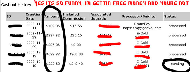 Another screenshot of my Cashout history