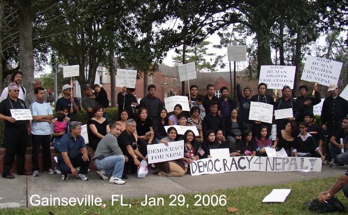 Protest at Gainsville looks more like a birthday party. As soon as candles were blown off and cake eaten, it seems someone came up with the idea of staging a demonstration. Then banners were hastily prepared, some printed and then the whole show was photogrpahed to show in Sajha. Correct me if I am wrong.