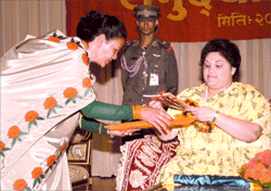 Looks like he already got some medals for his kalo kartuts: Rcvd: the Order of the Gurkha Right Hand 1st class (23.10.2001), Coron. Anniv. (1997), and Coron. (2001) medals. m. at the Narayanhiti Royal Palace, Katmandu, 22nd January 2003, Kumar Raj Bahadur Singh (b. at Katmandu, 20th October 1973), educ. Univ. of California, USA (M.Sc. Computer Science) , raised to the personal title of Kumar 17th January 2003, son of Nabaraj Bahadur Singh, by his wife, Usha Devi. - http://www.4dw.net/royalark/Nepal/nepal13.htm
