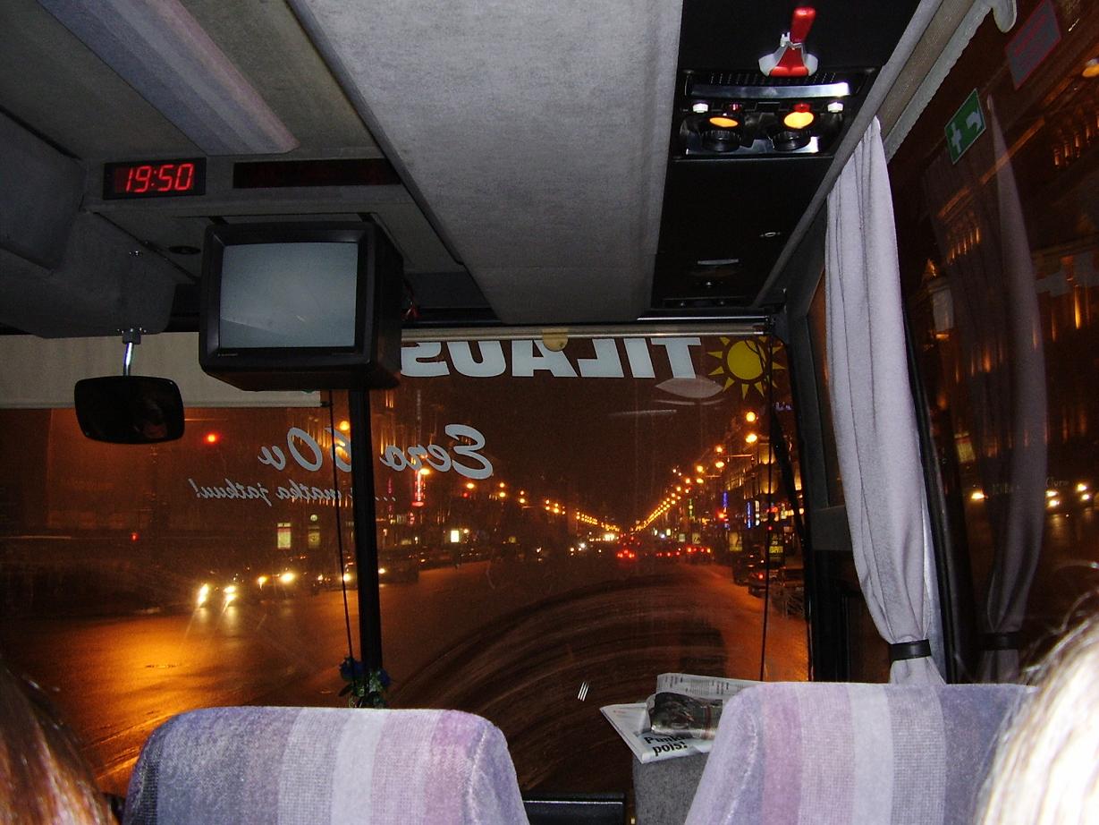 Alaxendro Nevskayar at night - The most sophistacated road of St Petersburg, view from front seat of bus at night
