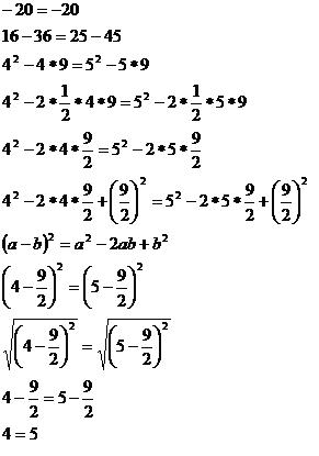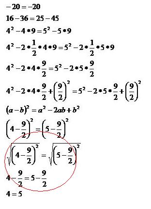 Lau kasle kahile padheko thaha chhaina tara let me explain where it is wrong : when you take the roots { Sq. Rt( 4-(9/2))^2} , there are + and - values on both side . after that its not you who take either positive or negatinve on both side . You take the sign on one side and its mathematics that guides what sign you have to take on other side. Well any way this did remind me of my school days and do keep on throwing these memories of past.