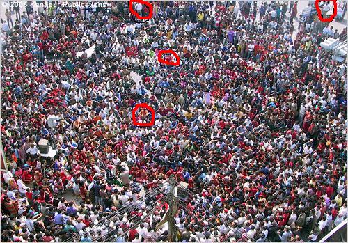 . Prjajtanta . It is a Joke. I see not only three simailarities. There are hundreds in this mass who look alike and wear same kind of shirts. . .