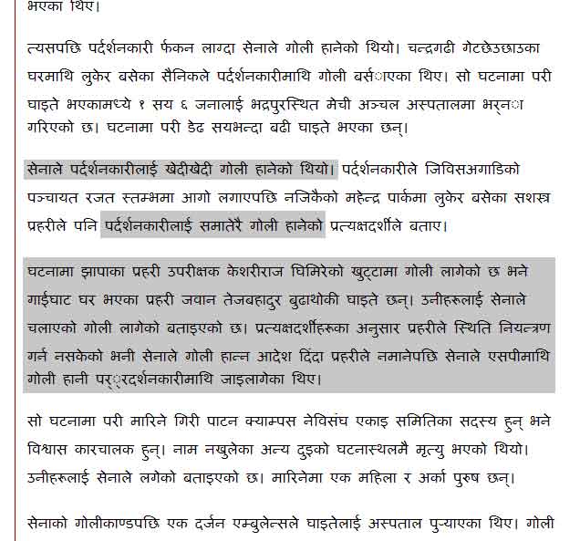 It seems child is injured in scuffle rather than by bullet. Must be when people started running when police opened fire, the scuffle must have injured the kid. The party should partly take the blame for this, NISHEDAGYA bhayeko thauma julus nikalera they have jeopradize the life of the people who are not in andolan. Ok i accept police are mad, but isnt so called and intelligent seven party should have done it in a peaceful way. JAHA JAHA NISHEDAGAYA bho tyahi janu parne. If tomorrow govenment enforces Nishedagya at toilets these seven party will force their way to toilets. They simply want to confront with police. I was in support of andolan till yesterday. But with the parites insisting on carrying on andolan and not working towards peace , the parties movement has lost credibility from today for me.