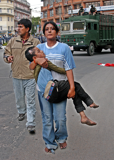 No MUM would take her kids into protests. Animals have sense, so do we. That is probably a picture of a mother holding her child after they were caught in the attack. Nepalese police's cunning must have caught them by surprise. Let's look at it from all angles before makin a freakin DECISION!!!