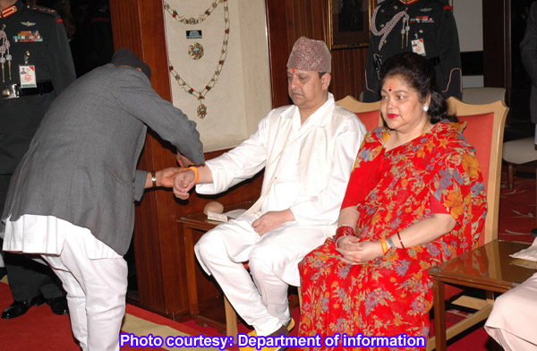 Gyan Sing must be praying like "Raksha gara prabhu mero throne ko" while receiving "Doro-Dhaago". But, it can be read in his face that he is all aware about this being his last Rakshaa-Bandhan as a monarch. Anyway, malai chaahi Rani le lagayeko rato sari man paryo hou. Kati paisa parne ho kunni (must be 20,000+ and shopped in Hong Kong)? euta kini dina manlagyo ho meri Gori Maichyang ko lagi in Nepal or South India if found during my next year's visit.