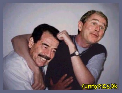 Bush turns to Powell, punches him on the shoulder and says, "See, dummy! I told you no one would worry about the 140 million Iraqis!"