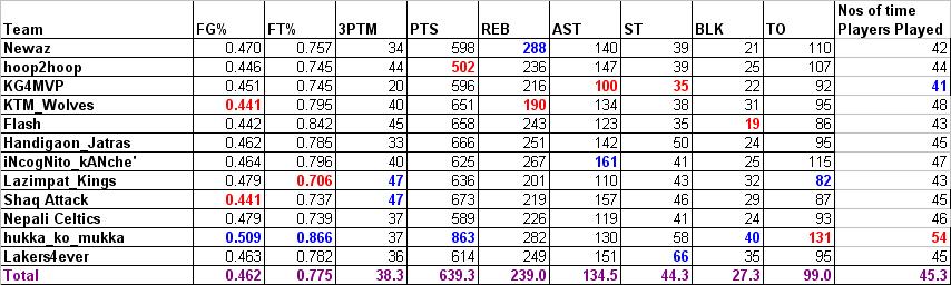 Hey folks, Let us start our discussion here. Those in The Nepali NBA fantasy league. Maybe we can do a bi-weekly update rather than weekly. We will have time to capture more trades/FA acquistions, or other interesting turn arounds in our league. Let's keep it alive. Go CELTICS jai Nepal