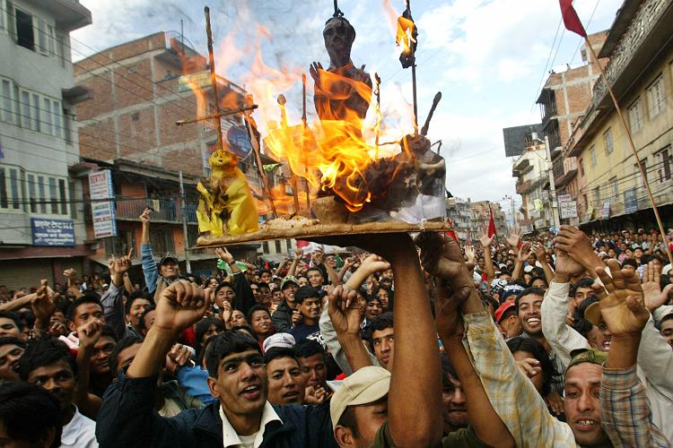 let this effigy burn for the time being and still if this gyane doesnot flee, people will enter rajdurbar and burn him.