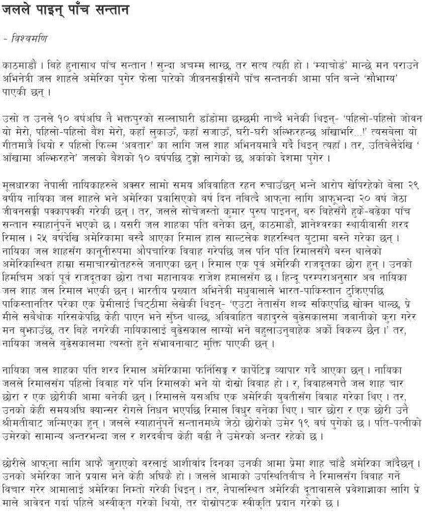 a very silly question indeed, i am really poor in these computer things my computer doesnot read that font, which software (i mean font) do i need to download and how do i download from internet (if yes which site) or is it that my computer has it and i need to set that up (if yes how) thanks guys regarding jal shah nepali film industry is not doing well these days, so she must be frusted and destined to land in america which must be the reason, money matters.....................