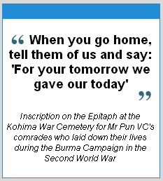 Tul Bahadur Pun VC in 2007Tul Bahadur Pun VC (born 23 March 1923) is a Nepalese recipient of the Victoria Cross, the highest award for gallantry in the face of the enemy that can be awarded to British and Commonwealth forces. In addition to the Victoria Cross, Mr Pun VC has been awarded 10 other medals, including the Burma Star.......