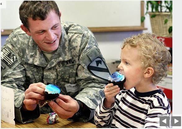 Hurles, here eating a cupcake with Gabriel, hadn't seen his son since he left in June. The father started planning the surprise when he found out his leave would coincide with Gabriel's birthday.