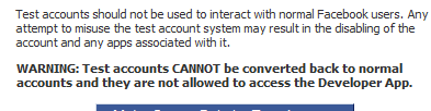 WARNING: Test account CANNOT be converted back to normal accounts and they are not allowed to access the Developer App.