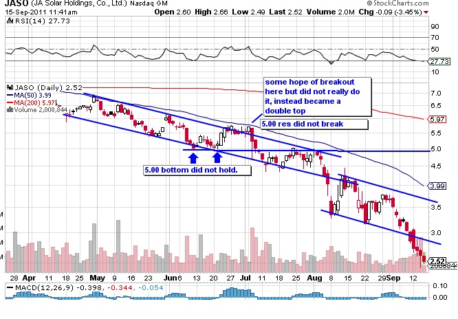 Dalbhat, that is painful. So just what is up with these solar stocks? Solyndra going bankrupt. FSLR in similar doldrums. I am going to stay with oil and gas for now. I got EOG in that sector.