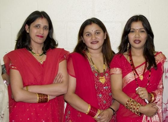 Three Nepali beauties. Points to taken. Did you notice the necklace the 3 beauties are wearing. It is called "Mangalasutra" A mangalsutra (also mangala sutra or mangalasutra) is an Indian symbol of Hindu marriage, consisting of a gold ornament strung from a yellow thread, a string of black beads or a gold chain. It is comparable to a Western wedding ring, and is worn by a married woman until her husband's death. Mangalsutra is one such symbol of marriage. It is not just a jewelry item it has lots of significance to an Indian married woman. It is a sacred thread of love and goodwill worn by married women as a symbol of their marriage. The groom ties it around the neck of the bride on the day of their marriage signifying their union. It is known by different names in different states of the country.According to Hindu culture, there are five signs of marital status of women. They are mangalsutra, Toe rings, Kumkum, bangles and a nose ring. Mangalsutra is the most important among them. The word mangalsutra means an auspicious thread or cord. It is also called thaali, thaaly or maangalyam in Kannada,Tamil and thaali/maangalyam/ mangalsutram/pustelu in Telugu in Southern India. It is probably passed from South India to North India and into Nepal.