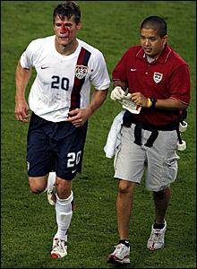 Italy 1 - USA 1 Intense game to watch, but disappointing in the end. Truly a weird and strange game. Not because one team maybe had deserved a win. In my opinion, neither deserved it and a tie is the 'fair' result. It's just that it was a dirty game to watch. Intense, emotional, lots of controversial calls by the ref, rough play, yeah all that. In spades. But… very little football, which is what we're here to watch. It wasn't Italy's best game or performance. Not by a very, very long shot. Still managed to rescue a point (yes, I just said Italy managed to rescue a point against the USA). Not because the US dominated. Hardly. They sucked just as the Italians did. It wasn't a pretty game. But the Italians rescued a point, I say, because Italy has to be Italy, and they really don't mind that. Italy comes into this group knowing it'll be very difficult for them not to make it to the second round. Everyone knows it. So what's the point in suffering? What gives if you get a tie instead of a win? You're frickin' Italy, and you'll still make it, and you'll play well when it counts. Otherwise, when you get back home the fans and the press will eat you raw. So getting a tie in any of their 3 games was a possibility that was contemplated by Signore Lippi, I'm sure. So no big deal. They know that when they're playing well, they can easily beat any of their groupmates. No big whoop, let's move on. The US, however, was the one with the pressure on them. Losing against Italy would've left them virtually out of the cup. So what do you do? Well, you don't whimper in the face of adversity. You lost the first game, you were rightfully routed, yes, but that's that and that's history. For your second game, it's critical that you go out and try to get the result, no matter the cost. Well, I'lll give the US that. They tried. Even when playing with 9, they did what they could. That doesn't make the fact of the US being a limited team magically disappear. So, good marks to the US for trying, but the truth may lie somewhere around another fact; that the US doesn't really have much to try with. The ref was a little card-happy, but in my opinion all the really controversial calls were correct. Those were all clear fouls (although he missed a clear-as-crystal PK in Italy's favor at the end). The send offs were correct. It was a weird, intense and fought over game. Tooth and nail from both sides. Man of the Match: None really shone. I can't honestly give it to anyone. If I had to pick one, I'd say Kasey Keller (USA), for a couple of critical saves during the second half to deny Italy. Have you noticed how many MoM's I have given to keepers so far? The good: An intense game, with several moments of back-and-forth play The bad: Unnecessarily rough at times. Some challenges were nasty. Not good refereeing overall, but he did get the nasty calls right. ******************************************************************* As far as FIFA is concerned. They don't want players ‘lunging’ in this WC. The message from FIFA was clear — to the refs, at least: Lunging, if there’s a foul contact, is punishable by yellow or red, depending. That’s the new recommendation for this cup. It’s gotta be a really, really timed and skilled tackle… you know the kind. Those that come from the side and just sweep the ball away with the thigh or shin, without any dangerous contact whatsoever, and the receiver of the foul only falling because of physics. That's the kind the refs will let pass. The clean tackles. Tackles from behind, going one/two footed with the stubs up, or even lunged tackles from the side… all those that we’re so used to, they can be punished now. And if the ref is strict and wants to apply this new recommendation, they can and will. http://glimpse.wordpress.com/2006/06/18/wc-day-9-reporter-mia/