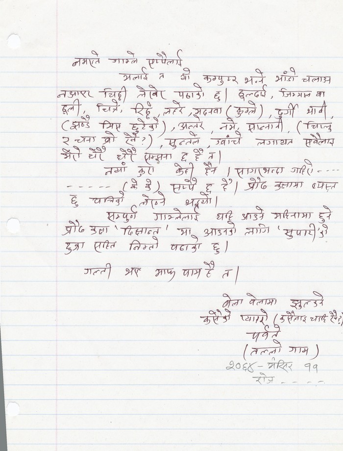 हा हा! पर्वते जीले गज्जबको हस्तलिखित पत्र लेख्नुभएछ ल! धनियाँवाद!