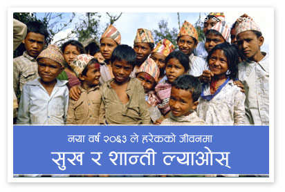 मेरो पनी छ है साथी हो नयाबरस को शुभकामना फेरी भुलीगैछस् नभन्नु होला गाथे ! अनी मेरो स्याङ्जा तिरका सप्पैलाइ नमस्कार छ है अनी २०६३ को शुभकामन गाउगाउमा पुगोस् नी फेरी ,,,! नेपाल भरीका हरेक लाइ यो सालमा फलीफाप होस यही सुभकामना ! मैल्: [email protected] हो ! बाइ बाइ,,,