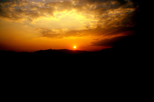 Behind the golden western hills The sun goes down, a founder'd bark, Only a mighty sadness fills The silence of the dark. excerpts from George Charles Whitney's Sunset