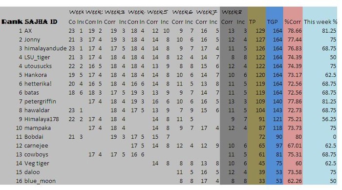 ~~~~~~~Week 8 Results~~~~~~~~