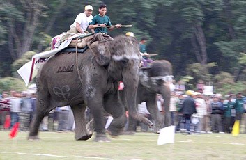A scene of the Fifth International Elephant Race at Sauraha in Chitwan district on Friday.