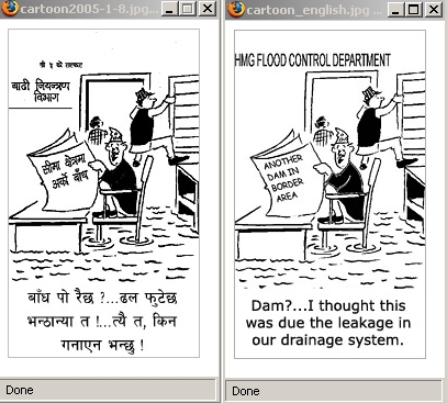 There are two types of criticism. Positive and Negative. When you get negative criticism, you are supposed to acknowledge and then improve. But we nepalese have a tendency to ignore ay criticisms that come hitting us. I am not criticizing the Cartoonists, I am criticizing the publishers... The enpali cartoons are great, and the uses of THET Nepali words have striking effect. But it doesn't mean that same writer of the dialogue can also efficiently write in english. The Kathmandu Post is not willing to pay extra money, and trying to use the same cartoon from Kantipur. Why can't they simply pay another cartoonist who writes in engluish, if there's one. If there isn't one, translation is fine. But why stinginess in paying someone who has good command in english to have the nepali cartoon translated !!