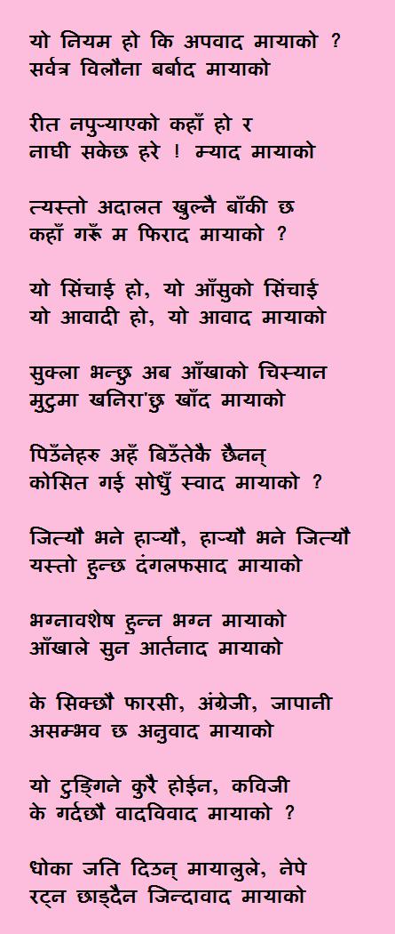 Cousin Harka, ma yesari arthyauchhu love yaniki - Prem lai, regardless of its charcter ( kind ) sunus hai ta, PREM BAS PIDA HO, MILYO BHANE KHUSHI, MILENA BHANE DUKHAI DUKHHA. YEHI HO PREM, YEHI HO PREM, YEHI HO PREM-PIDA. it was defined in one story "prem-pida" written by myself. RUINA le bhaneko thik chha, tara BIGREKI GHAR haru-ko affnai kahani hunchha pheri. well. lekhum tapaee haru sabai PREM ko paribhasha.