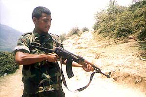 A maoist milita gaurding high hill post