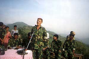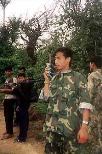 a Maoist field commander communicating with Hi-Tech wire less radio.