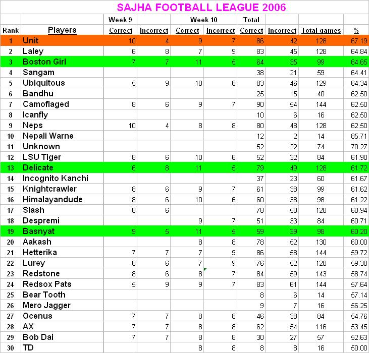 AX bro, thank you for updating the scores every week. If it was me, you wouldnt see any update after week 3. hehehe....