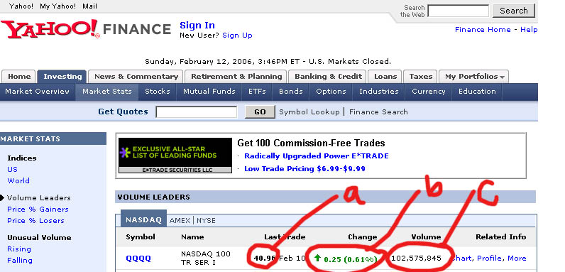 vontee! Why don't you email me or call me. I will explain everything to ya. Just click on my ID to semd me an email. BTW in the page above, a = market price pershare b = change in price since the mart opening that day c = total number of share that has been traded that day.