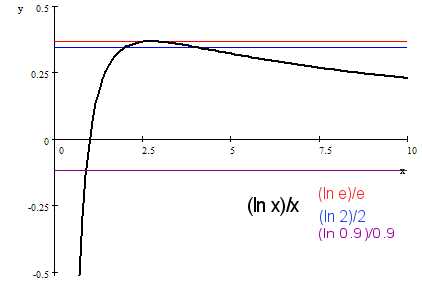 ^ (ln q)/q increases then decreases with q for q>1