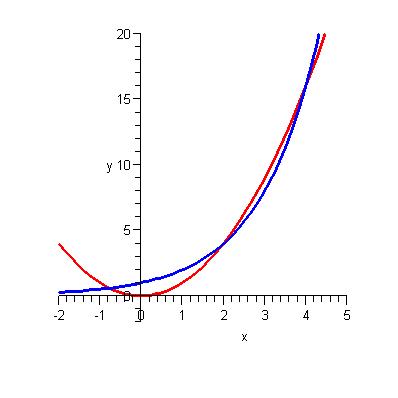 . x^2 = 2^x 2 (ln x) = x (ln 2) (ln x)/x = (ln 2)/2 The following is the plot of the last expression, and you get two roots, 2 and 4. It is interesting to see what happens if it is not x-squared but higher orders. It seems like there are only two real roots for everything more than (raised to the power) 2 except e itself, in which case we have only one real root. But there has to be more roots for higher order, right? Like cubic expressions should have 3 roots. I guess the ones we don't see are imaginary roots? As q tends to infinity, (ln q)/q tends to 0. Also, this line (ln q)/q first increases then decreases. Of course, for q<1, we have only one root - see the plot.