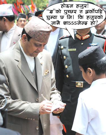 सबै जना अल्छि का पुर्पुरा हरु चौपारि मा आयो कि हाइ हाइ , कुरा कानि गर्नु , रमाइलो गर्नु ,गाउनु , बजाउनु छैन । राजा को काम कहिले जाला घाम भनेको जस्तो आयो हाजिर मिस भन्यो भागो यो त भएन नि , हाम्रो भौते काजि पनि अल्छि भएको । गुरु हरु को हालत यस्तै भए पछि चेला हरु को हालत के होला।