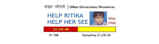Forwarded Message: This is a story of Ritika. If you know any organizations who can help and sponser the treatments of such cases, please let her father know about it. His address is [email protected] Her name is Ritika. She is 3 years old girl and she is suffering from complicated eyesight defect. She seems normal but she can't see anything. All her eyes can follow is the sensation of light. Ritika's parents, Sanu Babu Khanal and Puspa Khanal have consulted an international expert who happen to come to Nepal for special occasions for last three years and many other doctors of Nepal but nobody could diagnose the exact defect of Ritika's eyes. Some doctors diagnosed the defect as "Congenital Nystagmus" Ritika's case has recently been discussed with Dr. Robert Burnstine, Director of Pediatric Ophthalmology, Akron Children Hospital in northeast Ohio , USA . Dr. Robert Burstine, is one of only a few doctors who perform a procedure called Horizontal rectal Tenotomy for patients with congenital nystagmus, and he performed the first one in the world in 1999. Patients are said to travel from all over the country and beyond for this surgery. On average, patients have experienced a 20% improvement in their central Vision and a 50% improvement in their peripheral vision. Upon correspondence with the hospital administration, we came to know that the treatment casts approximately $ 7000. Unfortunately, Ritika's parents 'financial position is not sound enough to get her the treatment with that amount not of expe3nse. Her father works in a private company Butwal Power Company Limited (www.bpc.com.np) in Corporate Support Division (CSD), Her father earns only 1500 US$ per year. And the treatment with such financial background in quite impossible. Since, it is the matter of the life of a child; we should support Ritika's parents for her treatment at this time. Therefore, we are asking for your kind help. Please help them and forward this email to as many people as you can. Our contribution will be a valuable gift to her to lead a normal life. We have come to solution or contributing donations: You can send the donation directly to sanu Babu Khanal's Account given below, Name: Sanu Babu Khanal Saving Account Number: 006 00307930018 Himalayan Bank Limited Harihar Bhawan, Lalitpur, Nepal Please email her father at the following address (email: [email protected]), if you wish to make contribution. Remember, Your Small Contribution Could Mean a Lot to Somebody ! We thank you heartily for generosity and kindness in helping Ritika to see the world