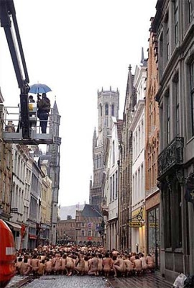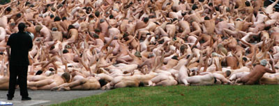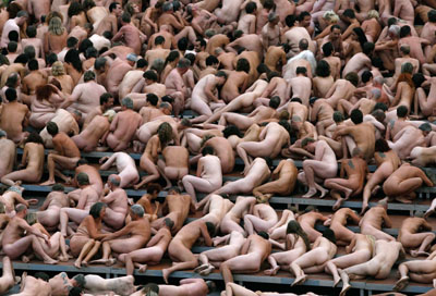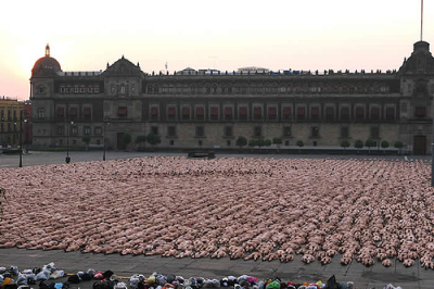 . A record 18,000 people took off their clothes to pose for U.S. photographic artist Spencer Tunick on Sunday in Mexico City's Zocalo square, the heart of the ancient Aztec empire. Tunick, who has raised eyebrows by staging mass nude photo shoots in cities from Dusseldorf, Germany, to Caracas, smashed his previous record of 7,000 volunteers set in 2003 in Barcelona, Spain .