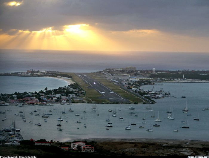 Philipsburg / St. Maarten - Princess Juliana (SXM / TNCM), Netherlands Antilles. (Caption: A setting sun closes out another day in paradise at St Maarten's Princess Juliana)