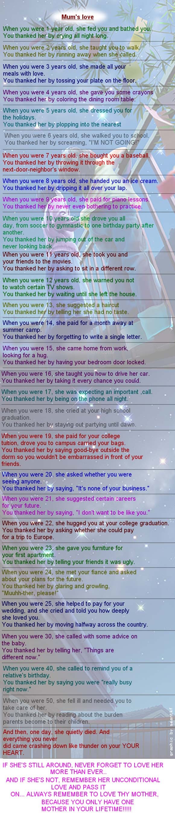 Here's similar regarding Mum's love