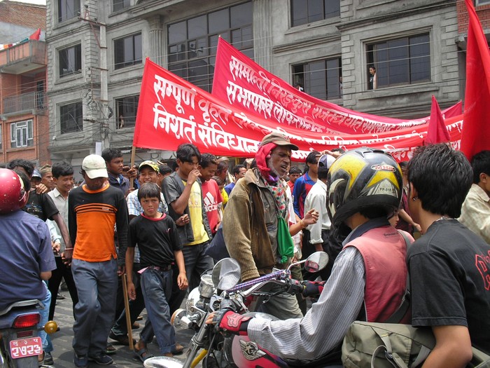 Yo Julus photo maile kina rakheko bhane ni-Yo photo maobadi ko julusko ho ra banner ma Nisarta Sambhidhan Sabhako Mag lekhiyeko cha (Tehi 1.5 years agadi khichiyeko ho) tara achamma lagcha tehi party le anekaun Sarta rakhdai dui dui patak sambhidhansabha bitholi sakyo ra lagbhag anischitta ko khadalma dhakeli sakyo--kunni kasko rajya ma je gare pani huncha bhanthe re kya