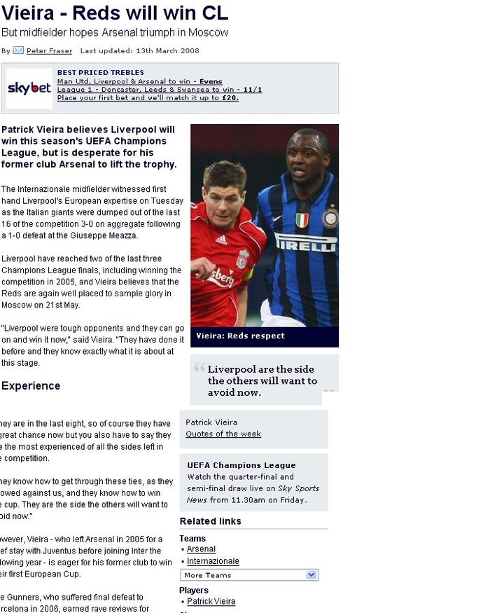 २। लिभरपुल ले jitne न् आइ प्रवल् सम्भावना छ । ३ बर्ष म दुई पल्ट फाईनल म पुगेर तिमी हरु ले चेल्सी र manchester लाई europe ma fucche हौ भनेर सबित gari एस्अक्यौ ।