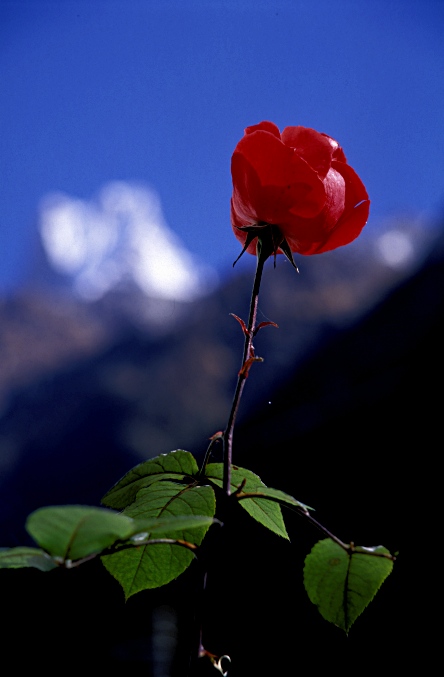 Oh, this is the joy of the rose, That it blows, And goes. - Willa Cather A red red rose with blurry Fishail at the background