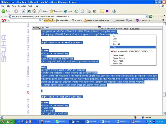 थुइक्क! प्रिन्ट त भयो तर उ माथि तिरु को चौतारी देखी लिएर सुन्तले ले टास्या सुर्ती माड्या फोटो सम्म सबै प्रिन्ट भएछ हेत्तेरिका लु ठिकै छ ल सबैको सप्तान्त राम्रो होस् केही मिठो बात गर, साँझ तेसै ढल्दैछ