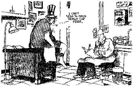 ssNY nice cartoon. The US will never catch world cup fever. they will be happy to be world champion in american football. my predicion of today. Germany 3- 2 Argentina Italy 2- 0 Ukraine
