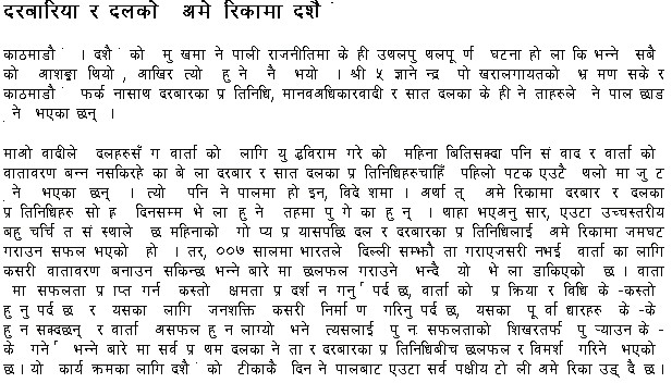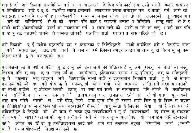 With the backing of foreign elements, even if the democracy (as wanted by the parties like NC/UML) comes in Nepal in future, without the support of Nepalese people it would be meaningless and Nepal will kep on falling flat in this viscious circle. At this moment, these chor parties are not even trying their 1% best to gather Nepalese peole's support, but they are all the time running after foreign help like beggars!!!!!!!!! Holy shit!! So Gagan is simply a piece (goti) !!! Nothing else....... just keep on watching!!!!