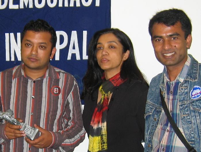 Alliance for Democracy and Human Rights in Nepal, USA Proudly Announces ?Bichaar Bimarsha? A periodic socio-political discussions on Nepal ______________________________________________________________________ Co-Sponsors: Human Rights Working Group, SIPA, Columbia University South Asian Institute, SIPA, Columbia University STRUGGLE FOR DEMOCRACY IN NEPAL: ROLES OF, AND CHALLENGES FOR, YOUTHS Interaction with Gagan Thapa Gagan Thapa is a former General Secretary of Nepal Student Union, student wing of Nepali Congress -- the largest political party in Nepal. He is undoubtedly the most prominent student leader who has become one of the leading figures in the current struggle for democracy in Nepal. He was jailed numerous times after the February 1, 2005 royal takeover on charges of ?sedition against the state? for his outspoken stance against King Gyanendra?s regime. Amnesty International had declared him a ?prisoner of conscience,? since he had been detained despite his peaceful and legitimate activities in support of democracy and human rights in Nepal. His release was procured on each occasion only under tremendous pressure from various human rights organizations and international governments. *Mr. Thapa?s presentation will be in Nepali. Written English transcripts of his major points will be available for non-Nepali audience. ** Q & A session will be held in English, with a translation help from the moderator if needed. Venue: Columbia University, W. 116th Street and Broadway. (Exact room location will be announced later.) Subway: # 1 or # 9 to 116th Street Station. Time: 5:00 pm Date: Saturday, October 22nd, 2005. Admission: Free Questions? Call Anil: 917-670-1057 or, Sanjaya: 917-902-2667