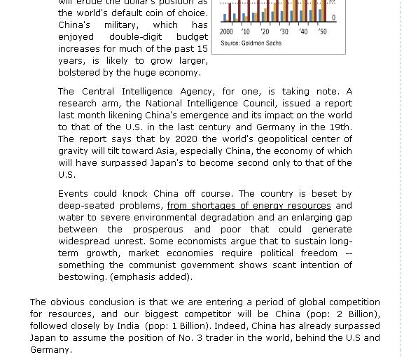 america has been making new enemies with all its foreign policies.What i see is US success is like balloon which can sustain till certain limit but sooner or later it has to brust. http://bigpicture.typepad.com/comments/2005/02/china_on_course.html