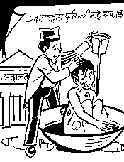 Is justice blind, or is it just blindfolded? Latest news in Nepal: Supreme court has given a 'clean chit' to ex-ministers Govinda Raj Joshi and Khum Bahadur Khadka, who had been held by the CIAA on corruption-related charges. It can be implicitly assumed that the next in line to receive such 'clean chit' are Bijay Kumar Gachhedar and Chiranjiwi Wagle. Our spineless justice system, which is apexed by the supreme court, found a way to evade the issue altogether. For details go to KOL news. My own analysis is that the supreme court decision (not verdict as stated in the KOL news) is not even mildly suprising. Given our justice system and the recent developments, what were we expecting - death sentence? Although I have to admit that there were more than a handful people that were demanding such a harsh sentence, let's face it, it was never going to happen in this environment. The accession to power has infused new-found vigor and audacity onto the once lifeless political parties and its cadres. If an alternate decision had been reached, even slightly as to one which nudged on with the public's sentiments, then we would have witnessed some terror or vandalism of epic proportions. Meanwhile, the justice system managed to stay as white as snow by relying on such a lousy excuse. Is justice blind, or is it just blindfolded? This would be the perfect way to address that topic of discussion. I am not one bit surprised with the fact that CIAA has filed an appeal against the supreme court decision. Here we go again, back to the merry-go-round. What a game! If anything, the justice system should have started anew and begun a fair trial against the charges brought on by the CIAA. It would allow the sanctity of CIAA to be presereved, while the defendants would get a fair trial. Otherwise, the supreme court could have remanded the case back to the district court, which would allow for the district court to take a crack at the case, and if required, and when furbished with supplemental and/or accidental findings that are relevant to the case, the supreme court could take over the proceedings. But giving a 'clean chit' basically abolishes any chance for a future trial in this matter. As a general rule, the supreme court cannot contradict itself during latter proceedings. If these guys were ever brought to trial again, the defense would use same motion over and over, till everyone turned blue. Oh well! When are we going to learn?