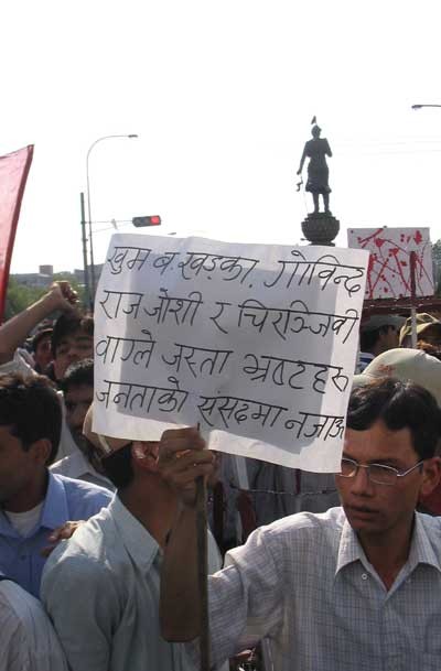 Well said Rabin Gurung Jee. DR -------------- From Kathmandu Post: Letter to the editor. http://www.kantipuronline.com/kolnews.php?&nid=91981 Letter to the editor Legitimizing corruption Recent news stories about the corruption cases against Khum Bahadur Khadka and Gobinda Raj Joshi have conveyed me a message that Loktantra has been established for the corrupt politicians, not the people. I am simply stunned by the news that the two former ministers have been given clean cheats on corruption charges. The mere "technical reasons" could not be the deciding factor. These cases have definitely posed a serious question over not only the rule of law and faith on judicial supremacy in Nepal but also on democracy. Because of widespread corruption, the people had lost their faith on democracy. The corrupt "leaders" were socially rejected everywhere and they were refused to even stand and speak among public during the April uprising and during the time the king directly ruled. The political parties have started to show their true colors no sooner the democracy is restored. They have started to purify the corrupt members of their party. This case has definitely erased my faith on the whole judiciary system and the political parties. I hope the king will not stage another coup to compel the parties to ask help from the people again. Rabin Gurung Kathmandu