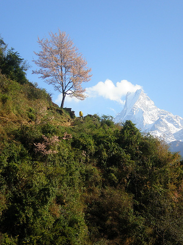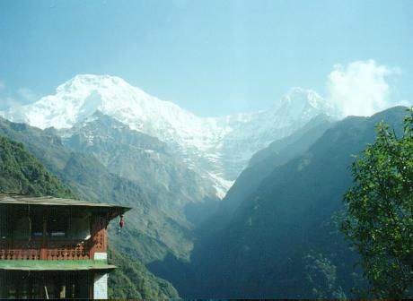 Annapurna South (left) and Hiuchuli (Right) seen from Chomrong.